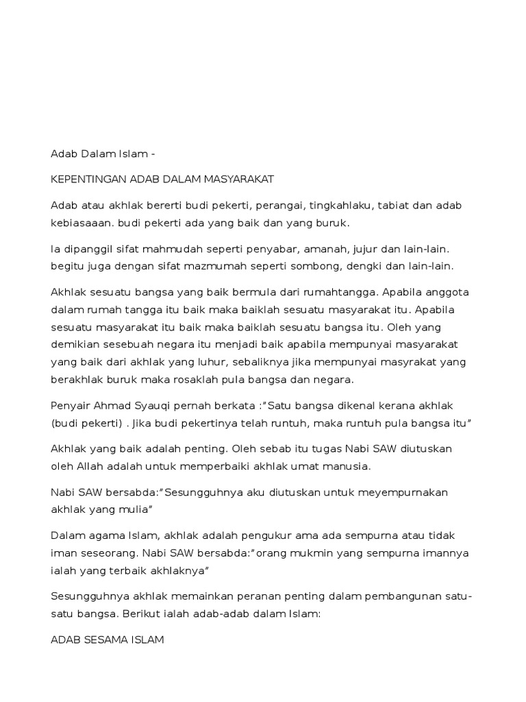 Kedudukan Dan Kepentingan Akhlak Dalam I Pdf
